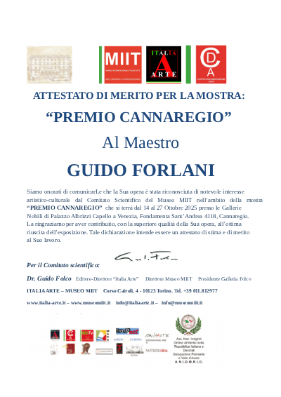 LA DIREZIONE E IL COMITATO SCIENTIFICO DEL MUSEO MIIT DI TORINO COMUNICANO I VINCITORI DEL 'PREMIO CANNAREGIO 2025' TENUTOSI PRESSO PALAZZO ALBRIZZI CAPELLO DI VENEZIA